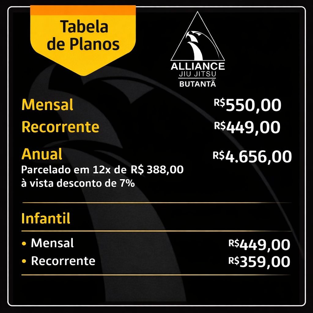 A equipe adota um ensino estruturado, dividido em diferentes níveis para iniciantes, intermediários e avançados. Além disso, a Alliance valoriza o ensino do Jiu-Jitsu como estilo de vida, promovendo disciplina, respeito e evolução pessoal.